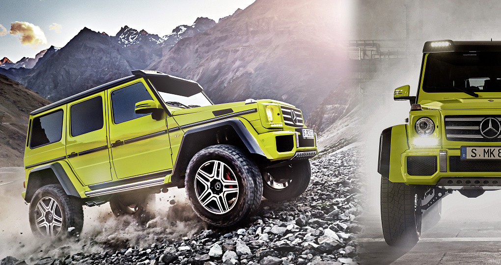 В итоге дорожный просвет G500 4x4² составляет 45 см (более чем вдвое больше, чем на обычном "Гелендвагене", и минимум вполтора раза больше, чем на любом серийном внедорожнике),