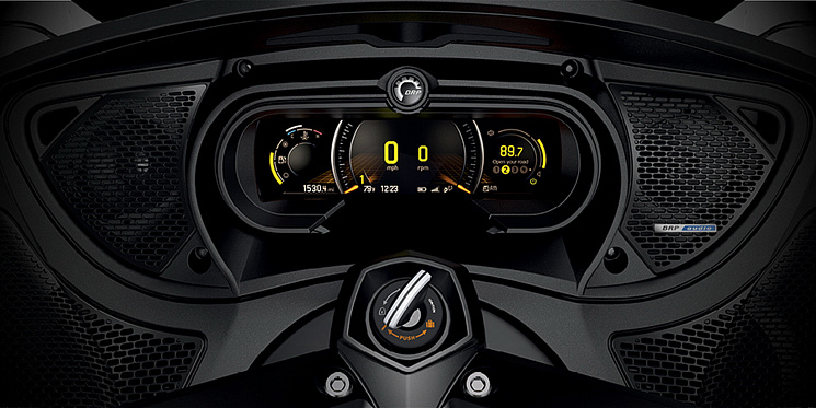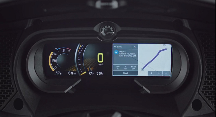 Состоящая из двух 11-саниметровых дисплеев, новая приборная панель позволяет выводить на один дисплей - спидометр и прочие приборы, а на второй - любые приложения, разработанные для Can Am Spyder.