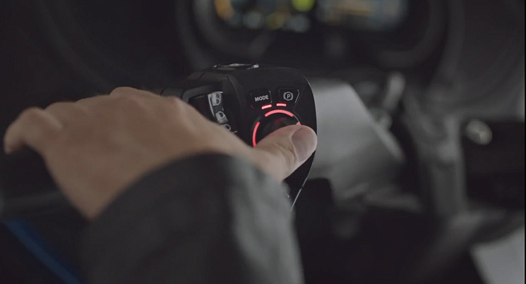 А чтобы не снимать руки с руля, управление приложением вынесено на специальный "джойстик" на левой рукоятке.
